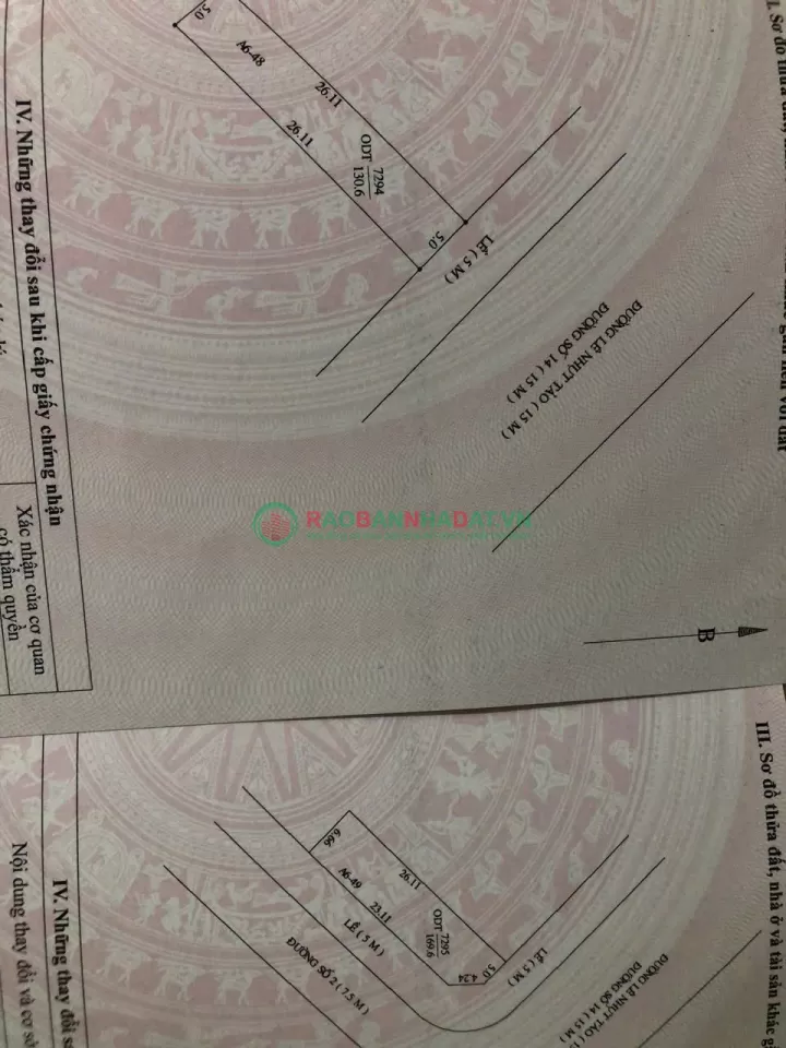 + Dt : 11.66 x 26 = 300m2, sổ hồng thổ cư.