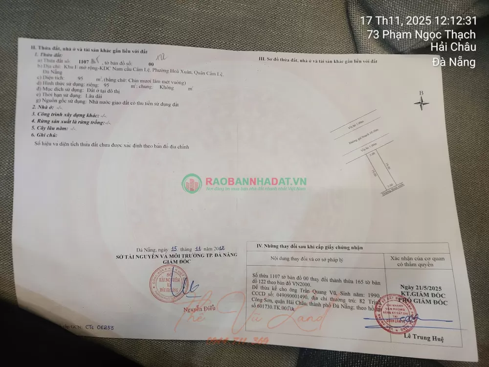 - Vị trí VÀNG ngay trung tâm Hoà Xuân, Cẩm Lệ, Đà Nẵng - khu vực đang phát triển cực nhanh. - Diện tích RỘNG RÃI 95m2 (5x19m), - Hướng Tây Bắc đón gió mát, không khí trong lành. - Sổ Đỏ chính chủ, pháp lý rõ ràng, sang tên nhanh gọn. - Giá chỉ 5.950 tỷ - Liên hệ ngay: 0843222222 gặp chính chủ