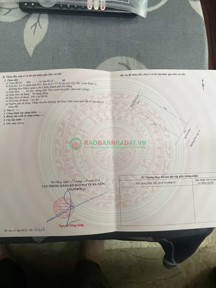 Bán lô đất đường PHÚ LỘC 17 , Phường Hòa Minh, Quận Liên Chiểu, Đà Nẵng -Vị trí : gần đường Lý Thái Tông, khu dân cư đông đúc - Diện tích: 83 m2 - Ngang: 5 m x 16,5m - Hướng: Đông nam - Đường trước nhà: 5.5 m, Vỉa hè: 3 m - Giá: 5.55 tỷ -LH : 0942992361 Thùy Trang (zalo/call) đi xem và làm việc chính chủ