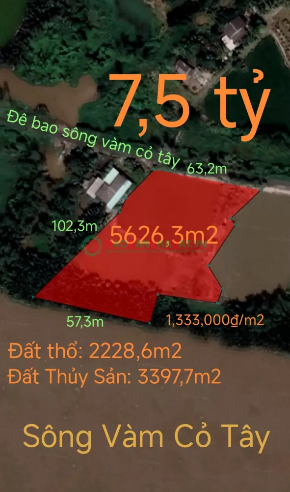 Bán lô đất thổ phân lô mặt tiền đê bao giá 7,5 tỷ