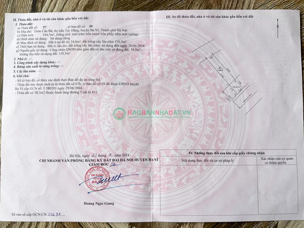 CHÍNH CHỦ GỬI TIN BÁN ĐẤT TÂY ĐẰNG – BA VÌ, HÀ NỘI