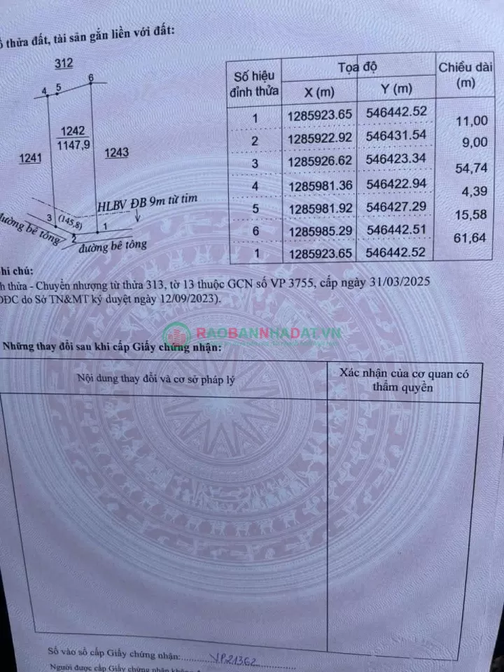 - Diện tích: 1.147,9 m² (1 sào 1),- mặt tiền rộng 20m, đường bê tông trước đất