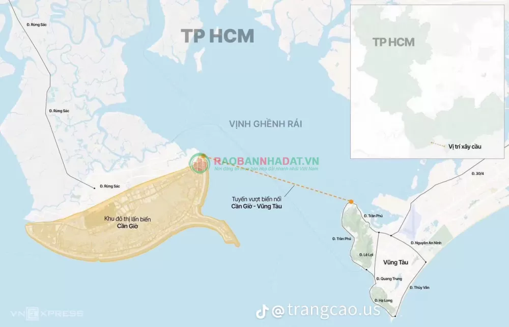 ü Cầu vượt biển Cần Giờ-Vũng Tàu là trục di chuyển từ trung tâm Thành Phố Hồ Chí Minh đi Cần Giờ hình thành -> rút ngắn kết nối trực tiếp với Nhà Bè – Quận 7 – trung tâm Hồ Chí Minh
