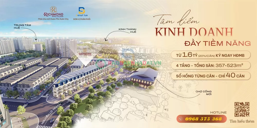 Richmond Phú Xuân mở thêm cơ hội An cư - Đầu tư hấp dẫn tại tâm điểm phát triển Bờ Nam Huế, nơi vừa có thể khai thác kinh doanh thực tế, vừa đón đầu tiềm năng tăng giá trong tương lai!