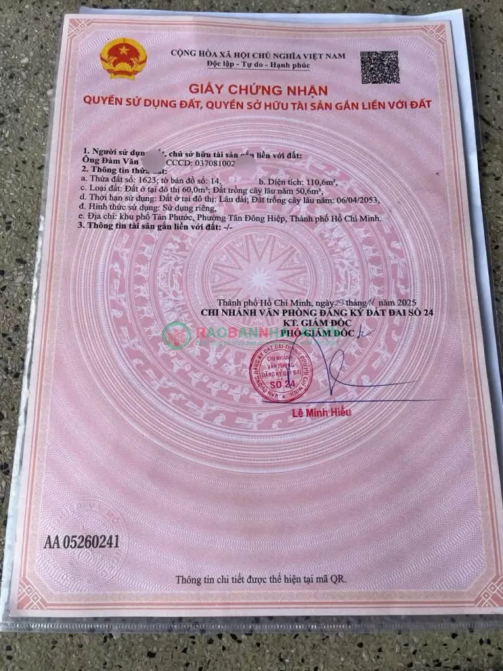 - Diện tích: 110,6m²- Thổ cư: 50,6m²